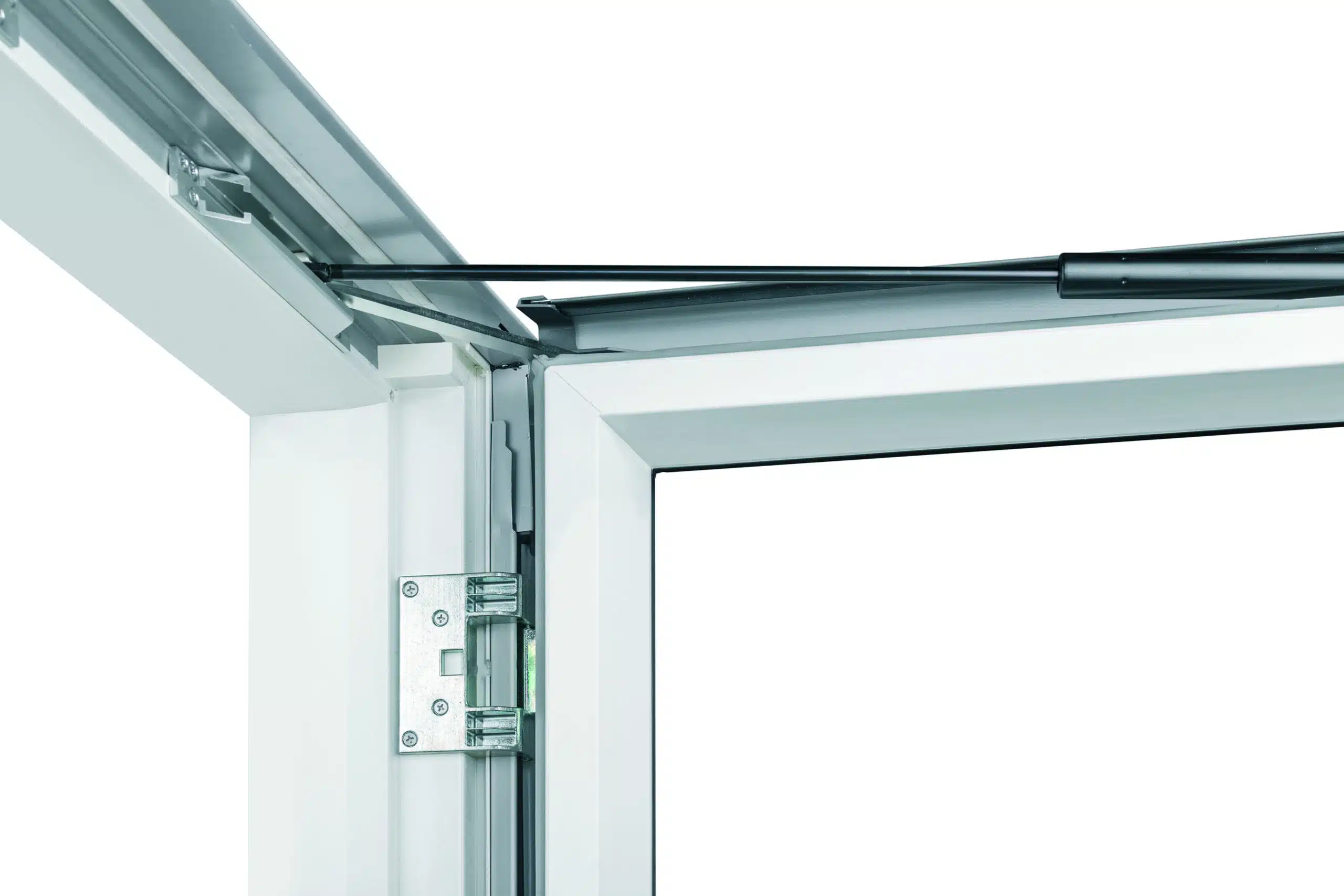 Το πόμολο στο μέσον του παραθύρου επιτρέπει το εύκολο άνοιγμα. Με μηχανισμό που επιτρέπει το άνοιγμα του παραθύρου στο πλάι κατά 90 μοίρες.Το ελατήριο αερίου στο επάνω μέρος βοηθάει στο άνοιγμα και κλείσιμο του παραθύρου και το κρατάει στην όρθια θέση. Το άνοιγμα του παραθύρου προς τα δεξιά ή αριστερά επιλέγεται τη στιγμή της τοποθέτησης.