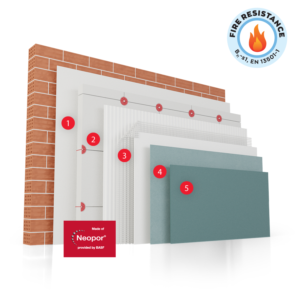 Με θερμομονωτικές πλάκες διογκωμένης πολυστερίνης (κατά ΕΝ 13163) διαθέσιμες σε διάφορα πάχη.