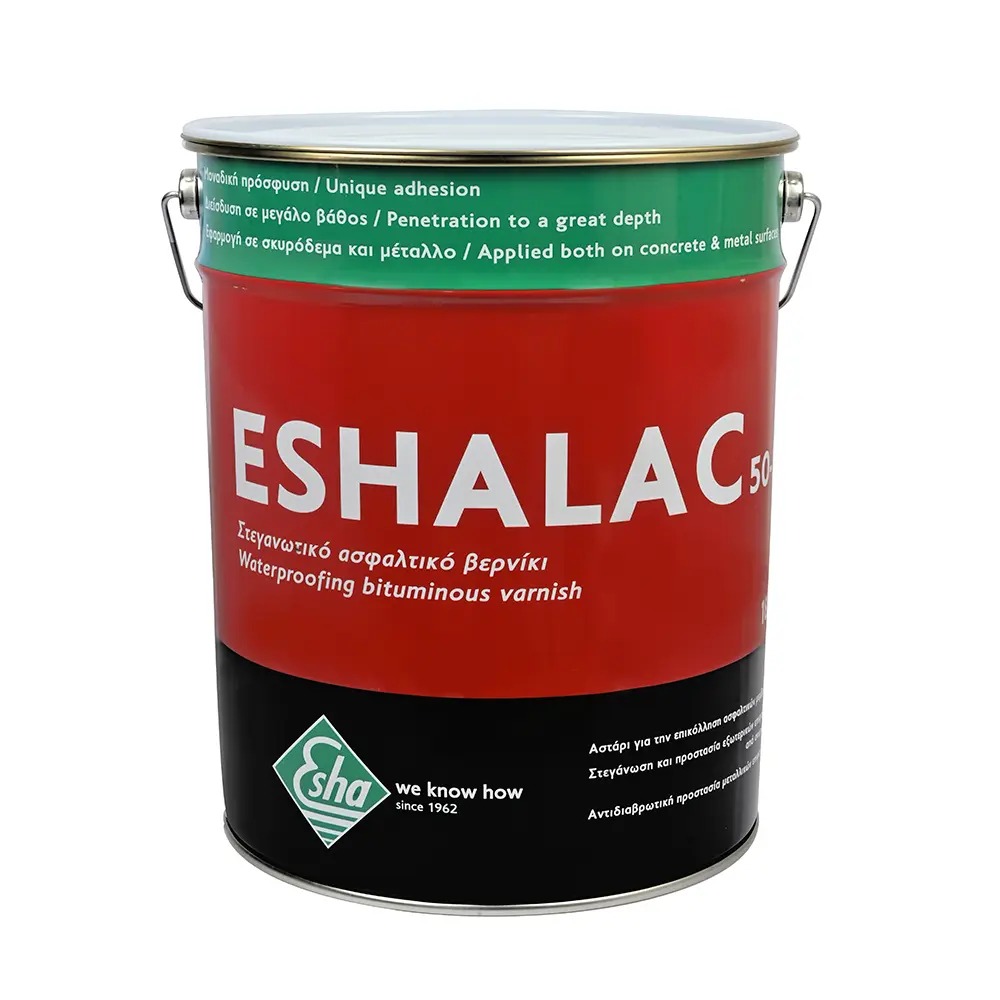 To ESHALAC 50S είναι επαλειπτικό ασφαλτικό βερνίκι που χρησιμοποιείται κυρίως ως αστάρι επιφανειών από σκυρόδεμα για την επικόλληση ασφαλτικών μεμβρανών. Οι ιδιότητες του ESHALAC 50S του επιτρέπουν να διεισδύει σε βάθος και άρα να προσφύεται άριστα στους πόρους της επιφάνειας του δομικού στοιχείου. Το ESHALAC 50S είναι συμβατό με πολυουρεθάνη, σκυρόδεμα, ελαφροσκυρόδεμα, αμιαντοτσιμέντο, τούβλο, λίθο, ξύλο, μέταλλο, γυψοσανίδα. Δεν είναι συμβατό με πολυστερίνη γιατί περιέχει οργανικούς διαλύτες. Καλύπτει την προδιαγραφή ASTM D-41.