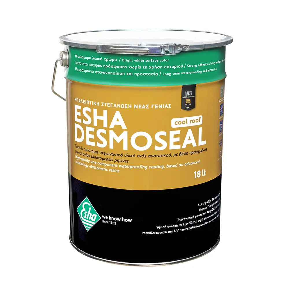 Το ESHADESMOSEAL είναι ελαστομερές στεγανωτικό επαλειπτικό οριζόντιων και κάθετων επιφανειών νέας γενιάς. Είναι ενός συστατικού, με βάση τις ελαστομερείς ρητίνες. Όταν έρθει σε επαφή με τον αέρα πολυμερίζεται και δημιουργεί μία ελαστική και συνενκτική μάζα, η οποία παρουσιάζει μεγάλη υδρατμοπερατότητα και μεγάλη ανθεκτικότητα στις καιρικές συνθήκες και στην UV ακτινοβολία. O τελικός υμένας έχει υπέραλμπρο λευκό χρώμα το οποίο παραμένει αναλοίωτο στο χρόνο, δε κιτρινίζει και δε προσβάλεται από την αιωρούμενα σωματίδια και βρωμιές.
