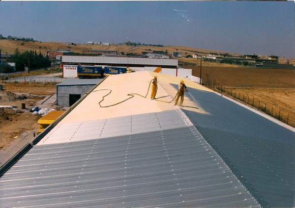Αν μεταξύ της στέγης και του εσωτερικού χώρου μεσολαβεί μια οριζόντια πλάκα σκυροδέματος, τότε η θερμομόνωση εφαρμόζεται είτε στην οριζόντια πλάκα είτε απευθείας στη στέγη. Η πολυουρεθάνη σε αυτή την περίπτωση είναι ιδανική λύση γιατί θερμομονώνει ενιαία και σε δύσκολες επιφάνειες όπως αυτή την περίπτωση που το ύψος συνήθως δεν είναι αρκετό για να εργαστούν οι τεχνίτες.