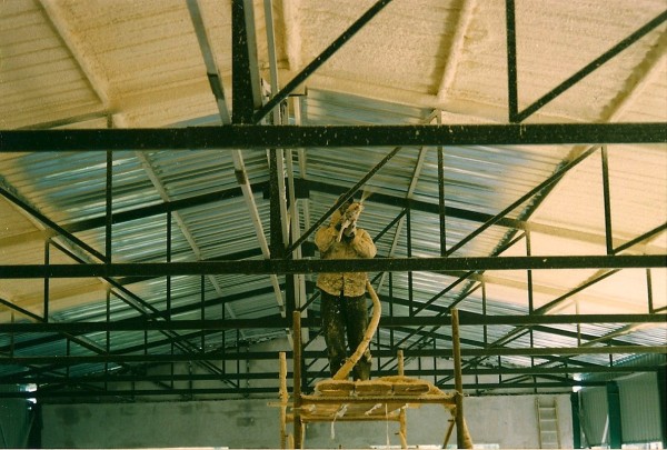 Στη δεύτερη περίπτωση της εσωτερικής θερμομόνωσης, έχουμε περισσότερες από μία επιλογές. Αν η στέγη είναι η ορατή οροφή του εσωτερικού χώρου και δεν μεσολαβεί κάποια άλλη πλάκα, τότε ο ψεκασμός της πολυουρεθάνης γίνεται απευθείας στην κεκλιμένη επιφάνεια της κεραμοσκεπής ή της αυλακωτής λαμαρίνας. Η πολυουρεθάνη γίνεται ένα σώμα με τα κεραμίδια ή τη λαμαρίνα και είναι εμφανής γι' αυτό συνήθως μια τέτοια μέθοδος απευθύνεται σε χώρους που δεν ενδιαφέρονται οι ένοικοι για την αισθητική τους όπως αποθήκες κλπ.